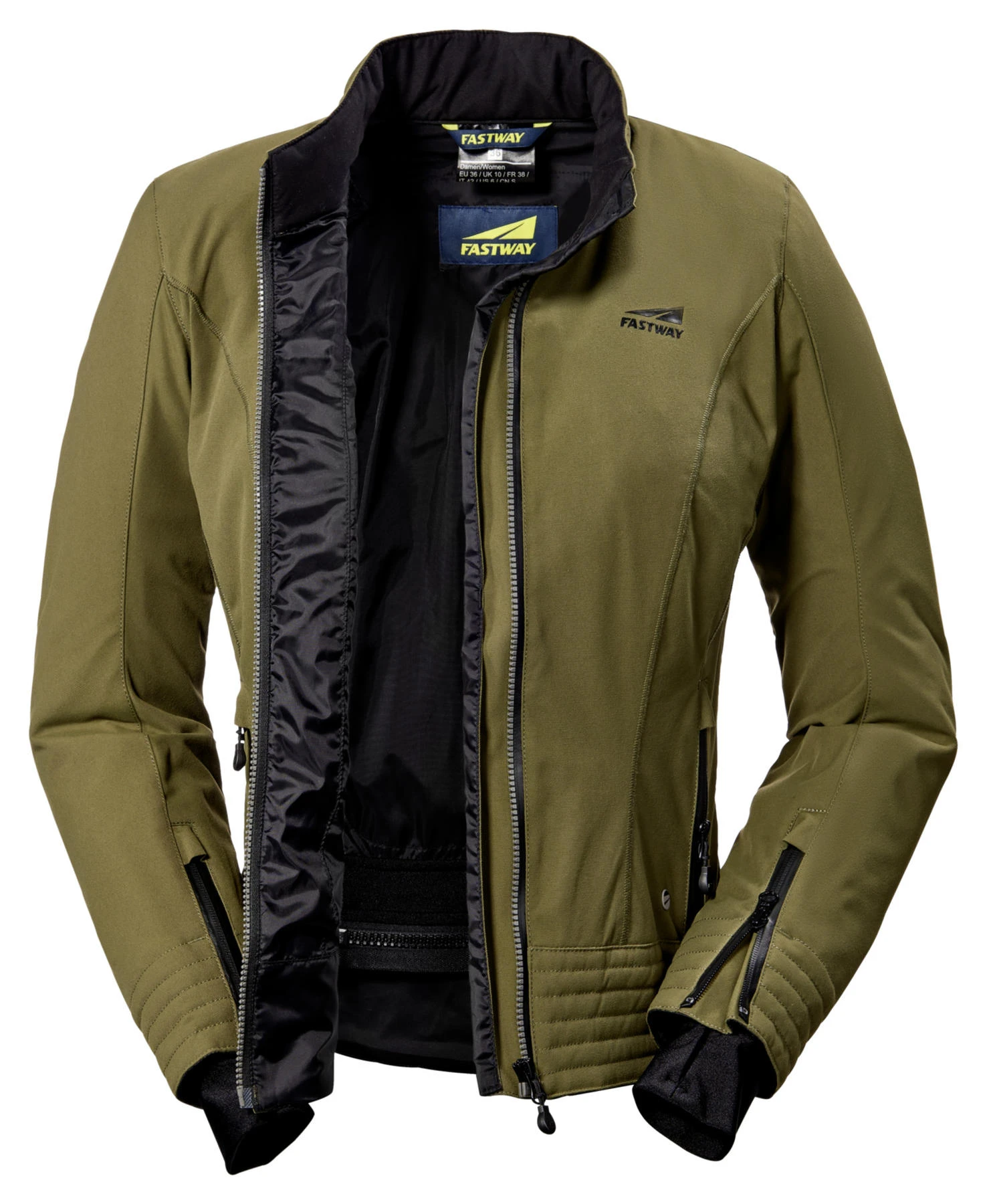 A stylish urban motorcycle jacket is what you get with the Fastway *City Women 201* textile jacket. For any weather and for daily use. This ladies’ jacket with close-fitting, sporty cut can handle just about anything. That’s because of features such as the breathable wind- and watertight climate membrane (lining laminate). Add to these the rugged shell material with a slight sheen plus a very comfortable taffeta lining. The decorative stitching on the cuff and hem add to the sporty look. Long internal cuffs with thumb loops keep the wind out of the Fastway *City Woman 201*.