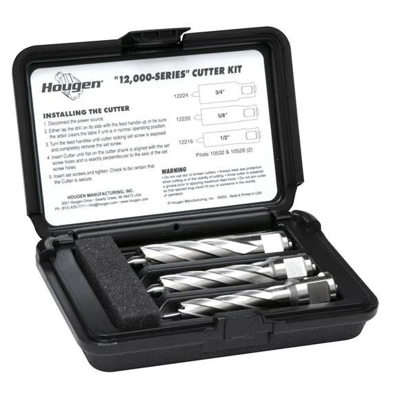 - Convenient annular cutter kit holds three “12,000-Series” cutters