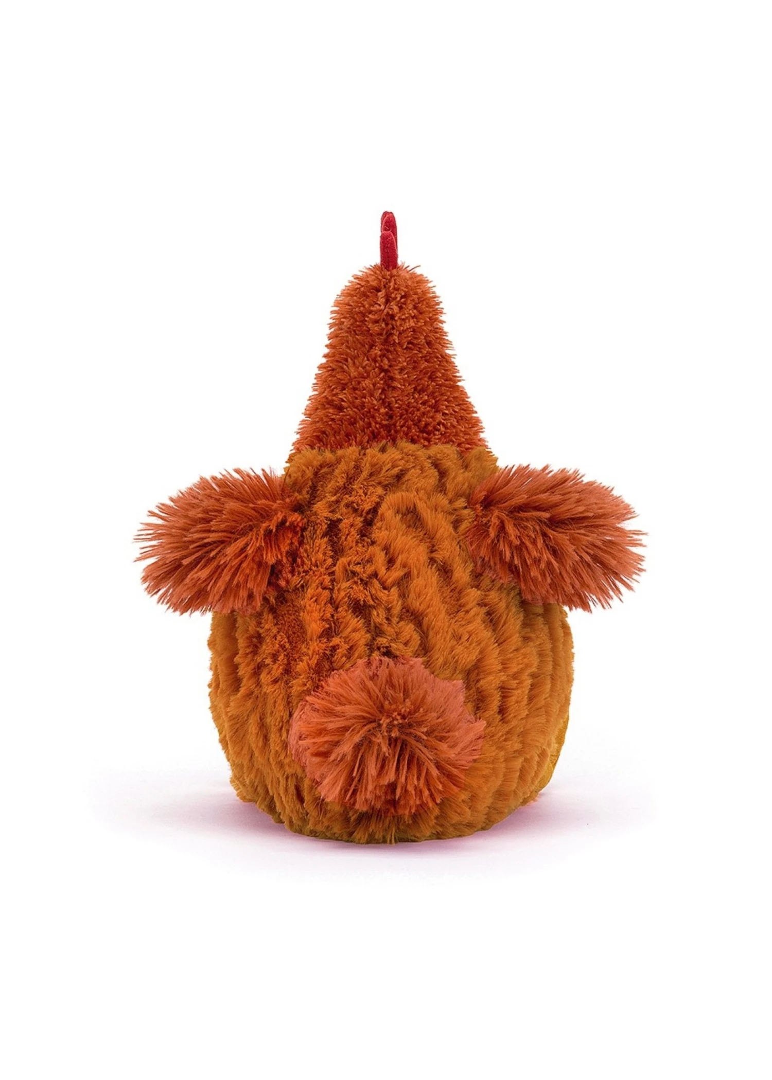 Cecile Chicken is simply stunning, with tons of tussly texture! Plump and perfect, this barnyard boss has a round ginger tum, scruffle spice wings and suedey mustard feet. Rocking a rose-red wattle and comb, and shaking a tail feather, sassy Cecile struts like a diva.
