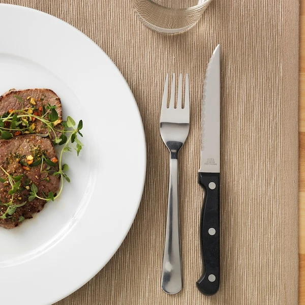 The serrated blade makes it easy to cut meat and ideal to use for eating.